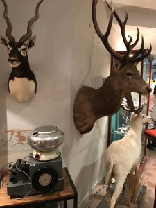 So, back in May 2018, I was in Melbourne for KidLitVic, a conference for writers and illustrators of children’s literature. As my writing buddy Kellie Byrnes and I were walking down Lonsdale Street one night, we passed a street level window that made me stop and back up. The window revealed a human skeleton reclining, feet casually crossed, in an antique dentist’s chair. I’d stumbled upon a real cabinet of curiosity! Wunderkammer is delightful and quirky—and it’s situated in a basement, just like my Poppy’s!