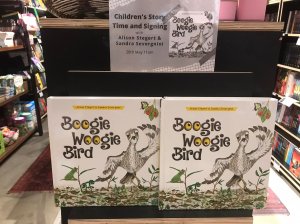 A writer’s journey is marked with milestones, substantial and ephemeral. There are concrete things like contracts and books, and there are fleeting moments to enjoy, insights to ponder. Today I enjoyed the latter, a little thrill of seeing Boogie Woogie Bird ‘in the wild’ for the first time.