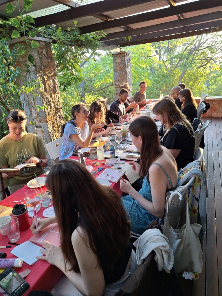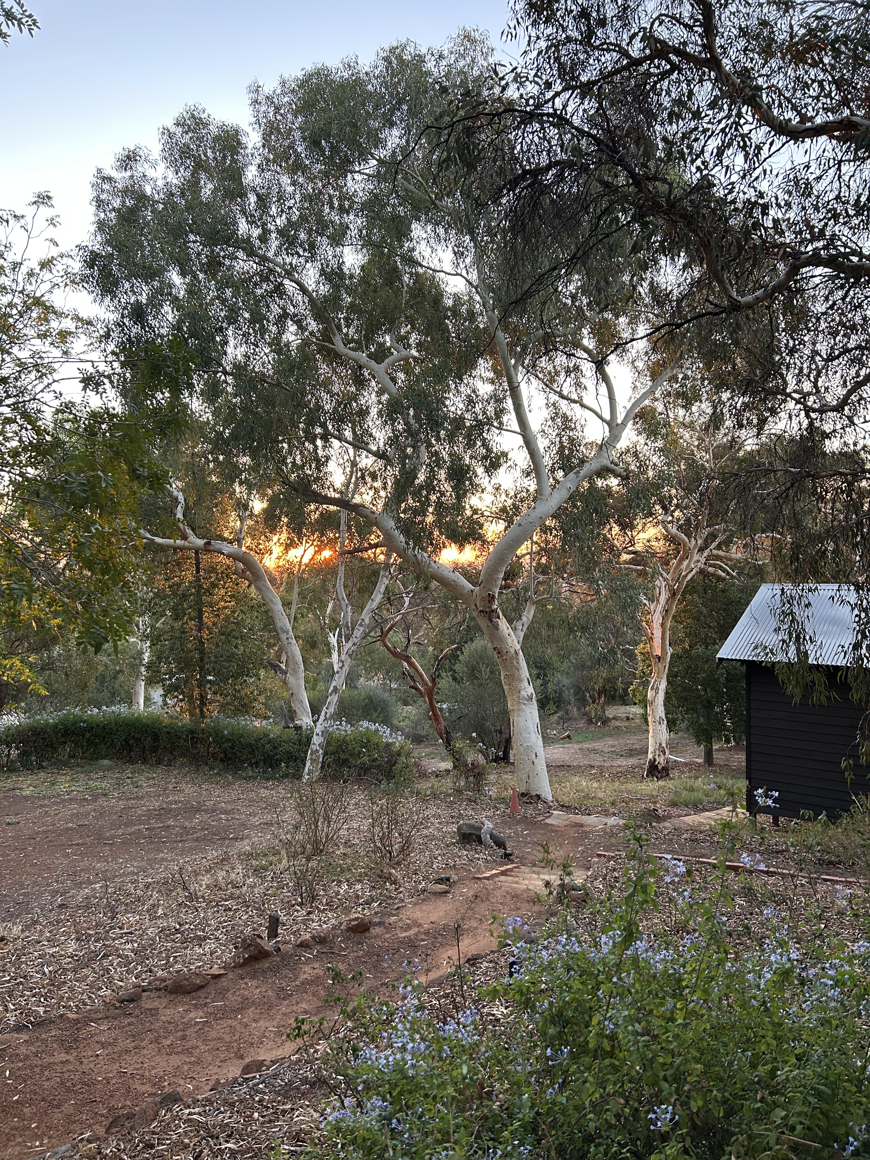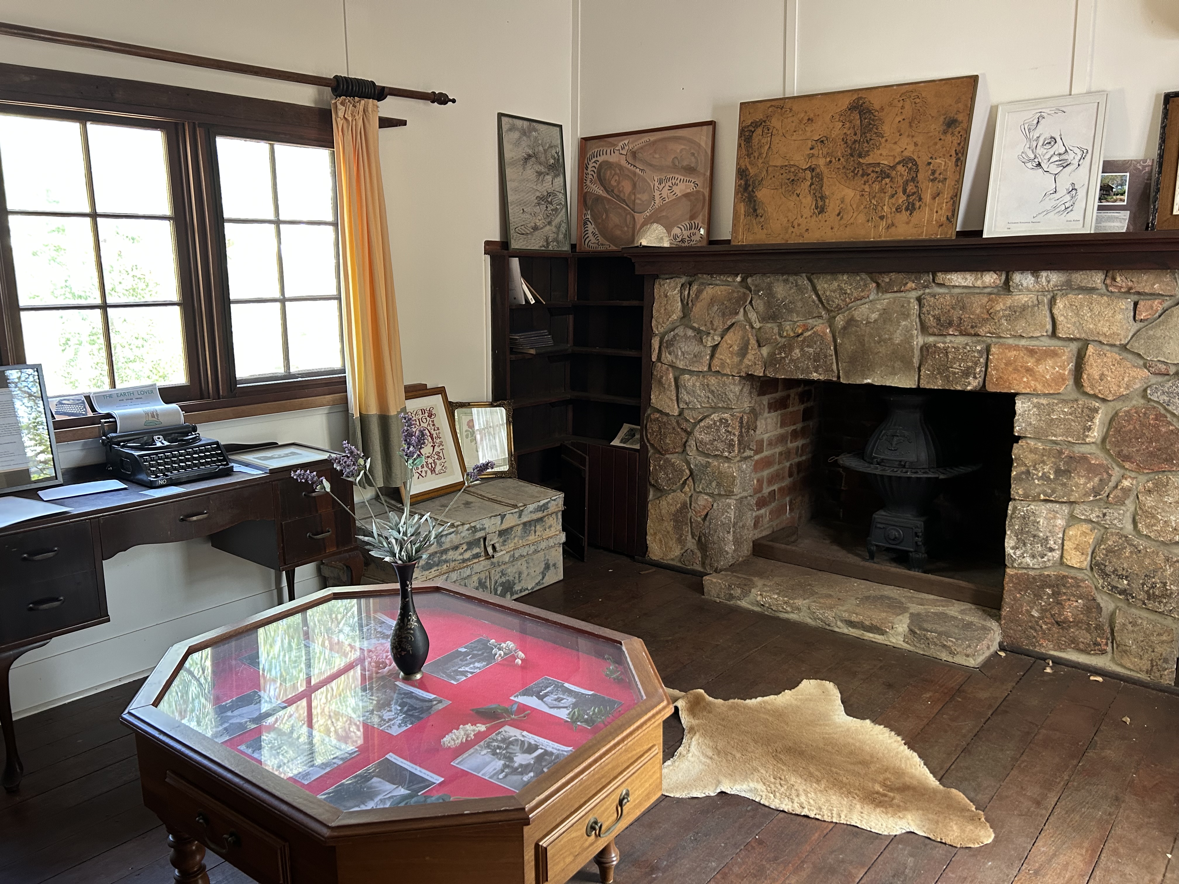 The grand finale of my residency was the KSP Centre’s Earth-Lover -Poetry, Paint & Sip event (shown below). I thoroughly enjoyed this multi-faceted literary extravaganza. Nathan Hobby, author of Katharine Susannah Prichard’s biography, The Red Witch, led a tour of the property and Katharine’s writing cabin. Her poems served as prompts for poetry writing and painting while sipping wine and enjoying a gorgeous autumn afternoon on the verandah. The final photos (bottom row, below) show Katharine’s writing cabin.